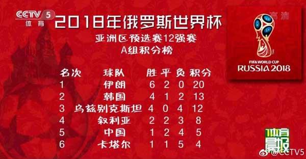足球世预赛亚洲区十二强赛第八轮,13日凌晨先赛一场,伊朗主场2-0完胜乌兹别克斯坦,在还剩两轮的情况下,领先小组第三8分,成为继东道主俄罗斯和巴西之后,第三支晋级2018年俄罗斯世界杯的球队!伊朗赢球也间接帮助国足保留晋级希望,国足目前在少赛一场的情况下,落后乌兹别克斯坦7分!今晚21:25,国足将客战叙利亚!一起关注!(央视新闻客户端)
