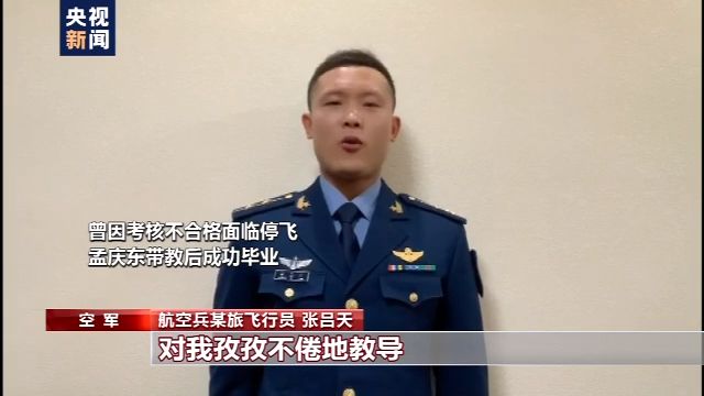 空军航空兵某旅飞行员 张吕天:在我对飞行都快失去信心的时候您出现了。是您对飞行的态度,对我孜孜不倦的教导,让我再次慢慢拾起信心。现在我在一线部队驾驶歼-11飞机,以后我也会继续努力,不让您失望。