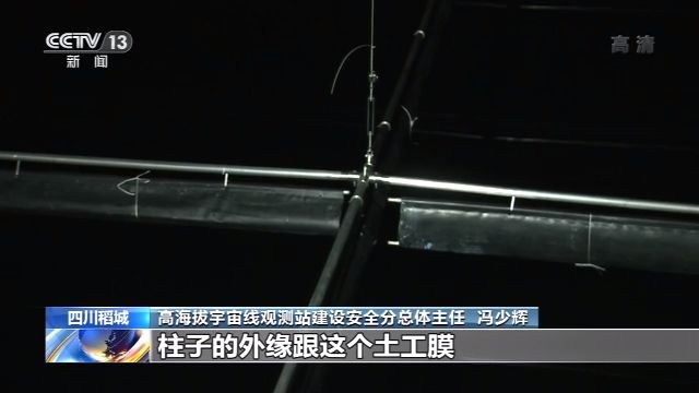 高海拔宇宙线观测站建设安装分总体主任 冯少辉:在这个水池柱子的建设过程中,就先放进去一个圆形的,跟这个土工膜同材质的一个热缩管,放进去以后,在铺防水膜的时候,柱子的外缘就跟这个土工膜就变成了同材质,L型的这种就可以熔在一起。