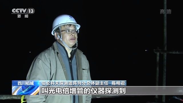 切伦科夫探测器阵列分总体副主任 陈明君:当带电的宇宙线粒子打到我们水里面的时候会产生一种切伦科夫光,会被我们的一种叫作光电倍增管的仪器探测到,这样我们就可以进行一个数据的分析。