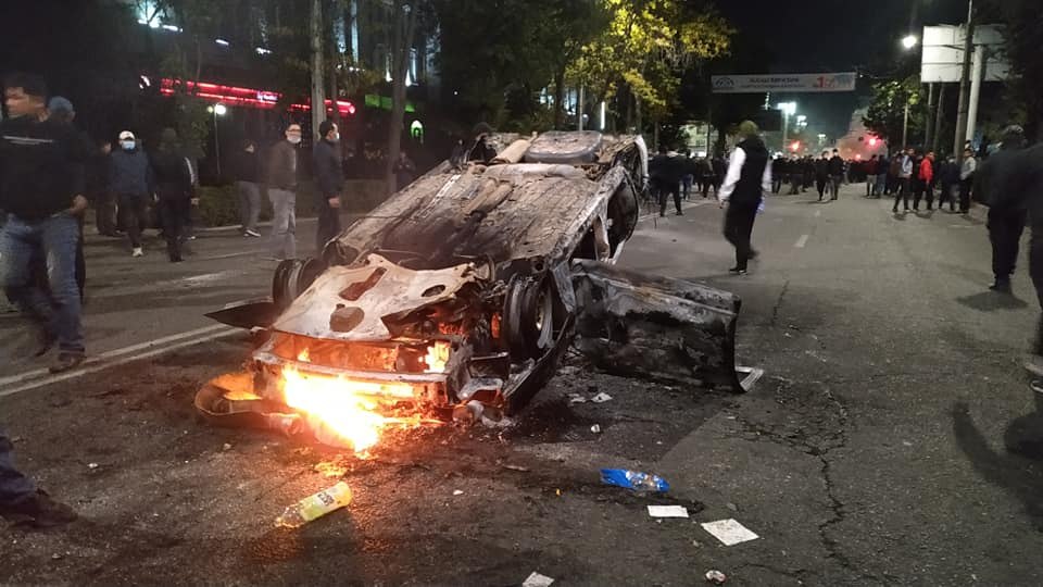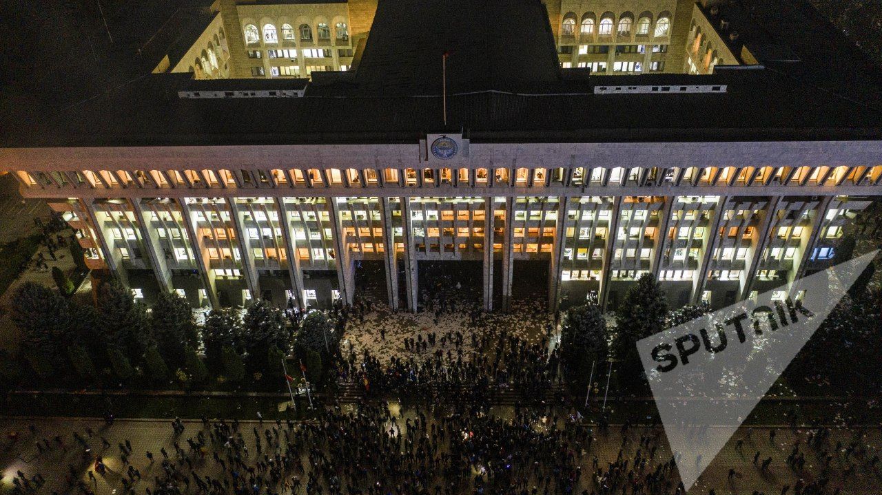 凌晨3时左右,抗议者冲击政府大楼成功,前总统阿坦巴耶夫的儿子卡迪尔带领支持者占领“白宫”。随后,抗议者又占领了吉国家安全委员会办公大楼并释放了在押的阿坦巴耶夫和其他前政府官员。临近7时,“白宫”东侧楼体起火,目前消防人员正在进行灭火作业。