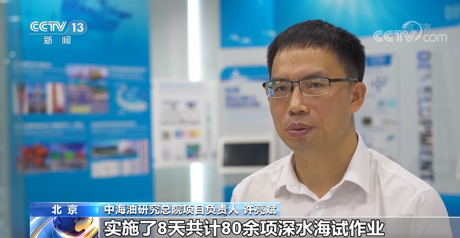 中海油研究总院项目负责人 许亮斌:我们在奋进号钻井平台实施了8天共计80余项深水海试作业,完成平台安装与适配性测试、悬挂隔水管动载测试和航行测试等,将恶劣海况和紧急情况下的平台应急动复员时间压缩至8小时以内。