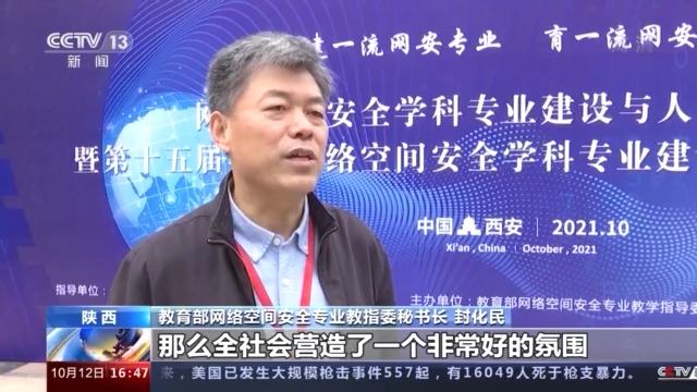 教育部网络空间安全专业教指委秘书长 封化民:从让企业深度参与高校人才培养工作,到人才的就业,包括我们的学科竞赛等等各方面,全社会营造了一个非常好的氛围。全社会共同协力推进网络安全人才培养工作,这对我们国家网络安全人才的教育,技术、产业的良性发展的构建有积极作用。