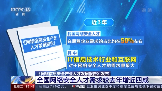 网络安全专家 马烨:我们知道像金融、工矿以及交通,他们所处的场景就不一样,所以说他们需要的网络安全人才,既要懂本领域的专业技术,也要懂网络安全,他们需要的是一种复合型的人才。