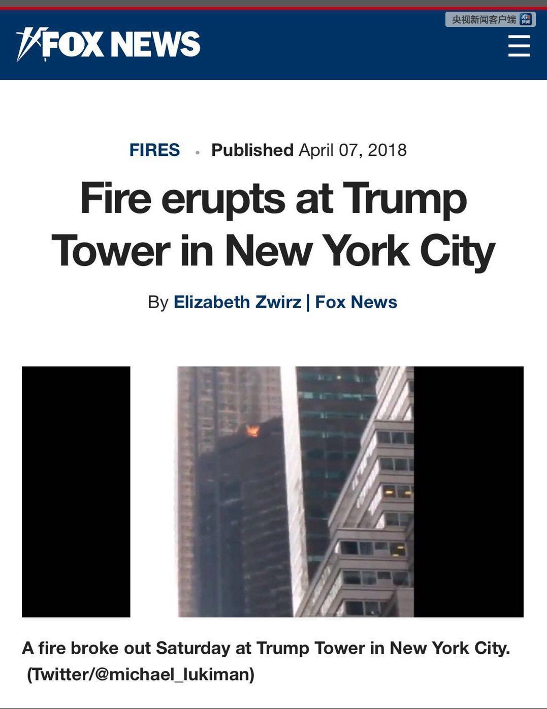 据报道,当地时间7日,曼哈顿特朗普大厦大火已造成1人严重受伤。(央视记者 朱曦莉 )